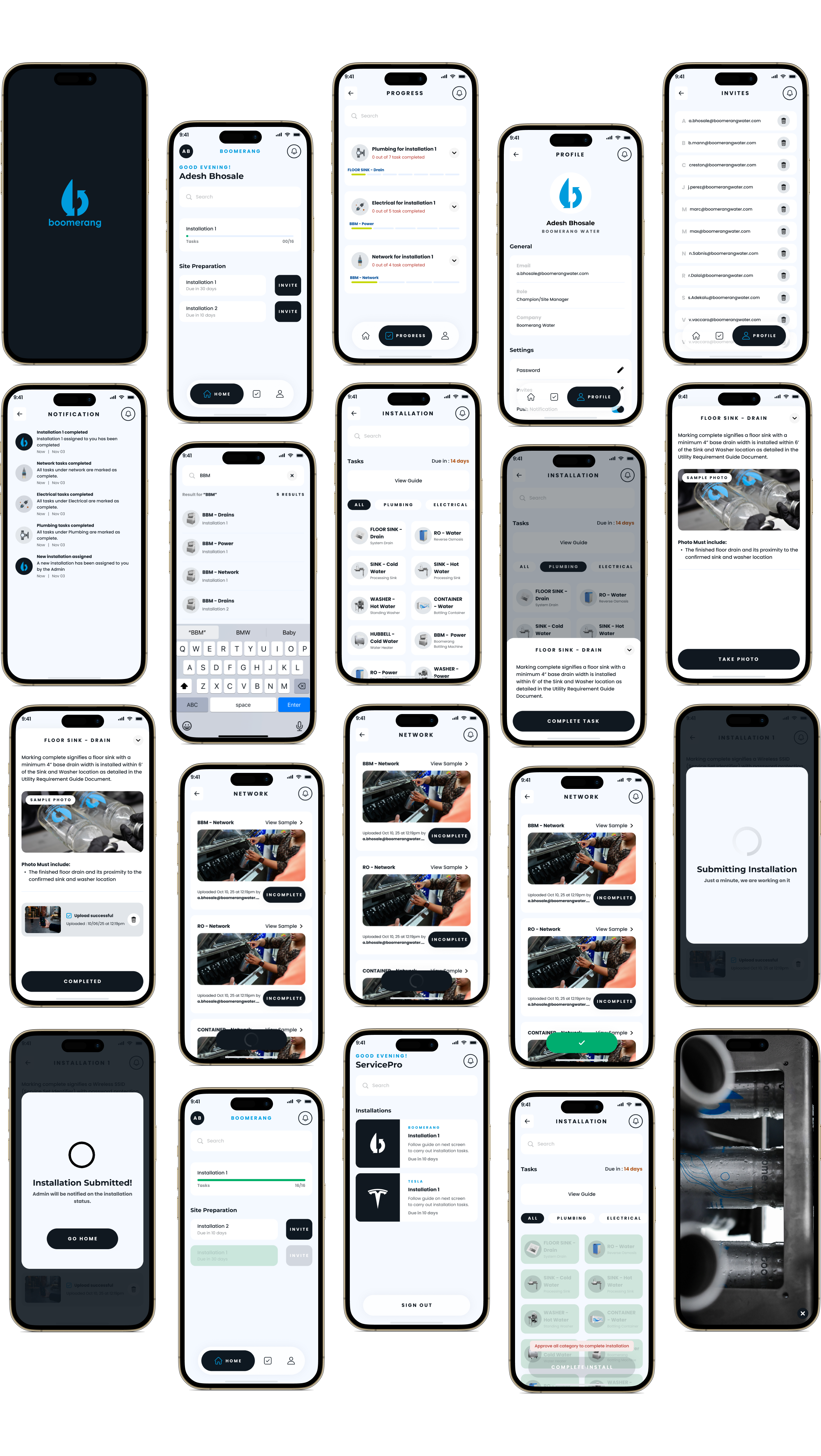 The app’s design and development were driven by user insights gathered from Boomerang’s executive team, field service engineers, and project managers. Working closely with team's software engineers, we mapped out real-world deployment scenarios and system frameworks, resulting in a well-defined user journey and a seamless experience for both internal teams and external partners.